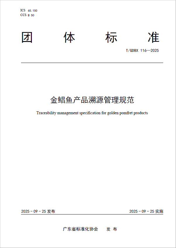 T/GDBX 116—2025 金鲳鱼产品溯源管理规范 2025-09-25 12:32 来源: + 打印 【字体: 大 中 小 】 上一篇:T/GDBX 117—2025 金鲳鱼初加工规范 下一篇:T/GDBX 115—2025 蒸发持续凉感纺织品