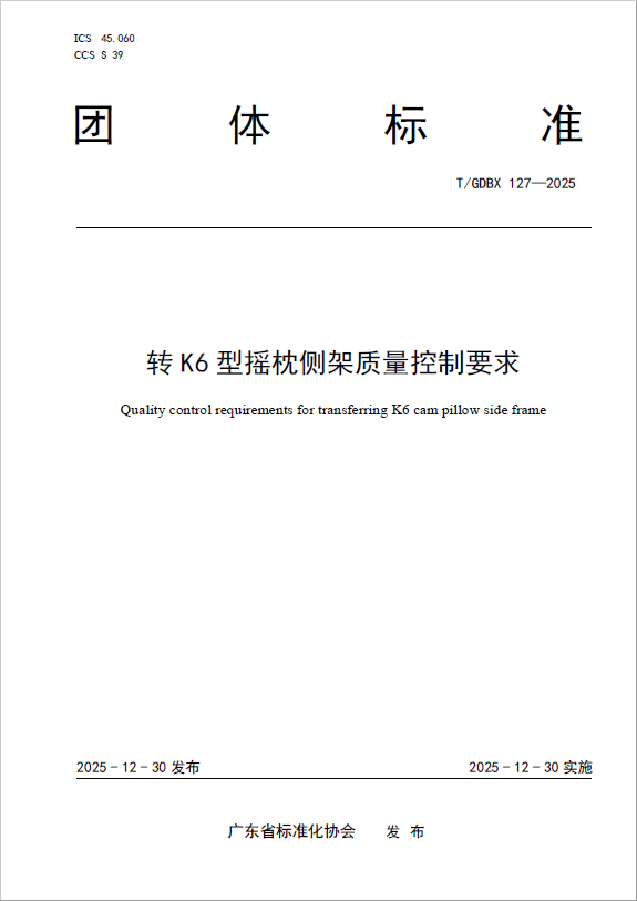 T/GDBX 127—2025 转K6型摇枕侧架质量控制要求 2025-12-30 14:36 来源: + 打印 【字体: 大 中 小 】 上一篇:T/GDBX 128—2025 铁路货车新造轮轴组装质量及技术要求 下一篇:T/GDBX 126—2025 铁路车辆钢材涂装预处理作业指南