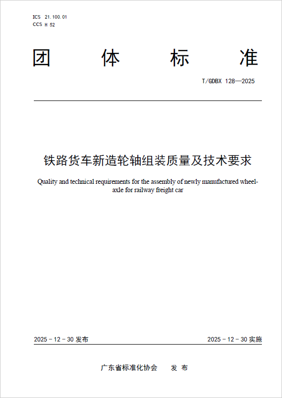 T/GDBX 128—2025 铁路货车新造轮轴组装质量及技术要求 2025-12-30 14:37 来源: + 打印 【字体: 大 中 小 】 上一篇:T/GDBX 129—2025 铁路货车交叉支撑转向架组装质量要求 下一篇:T/GDBX 127—2025 转K6型摇枕侧架质量控制要求