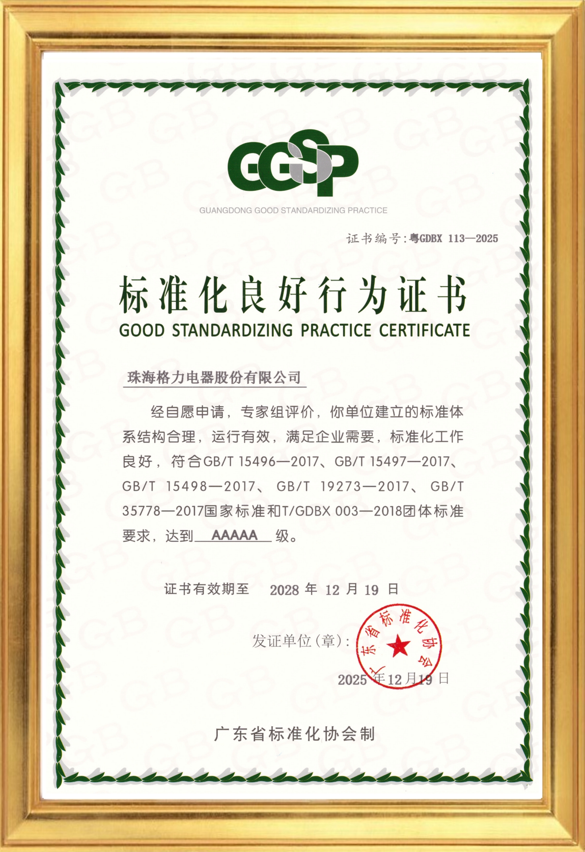 珠海格力电器股份有限公司通过标准化良好行为AAAAA级企业复审